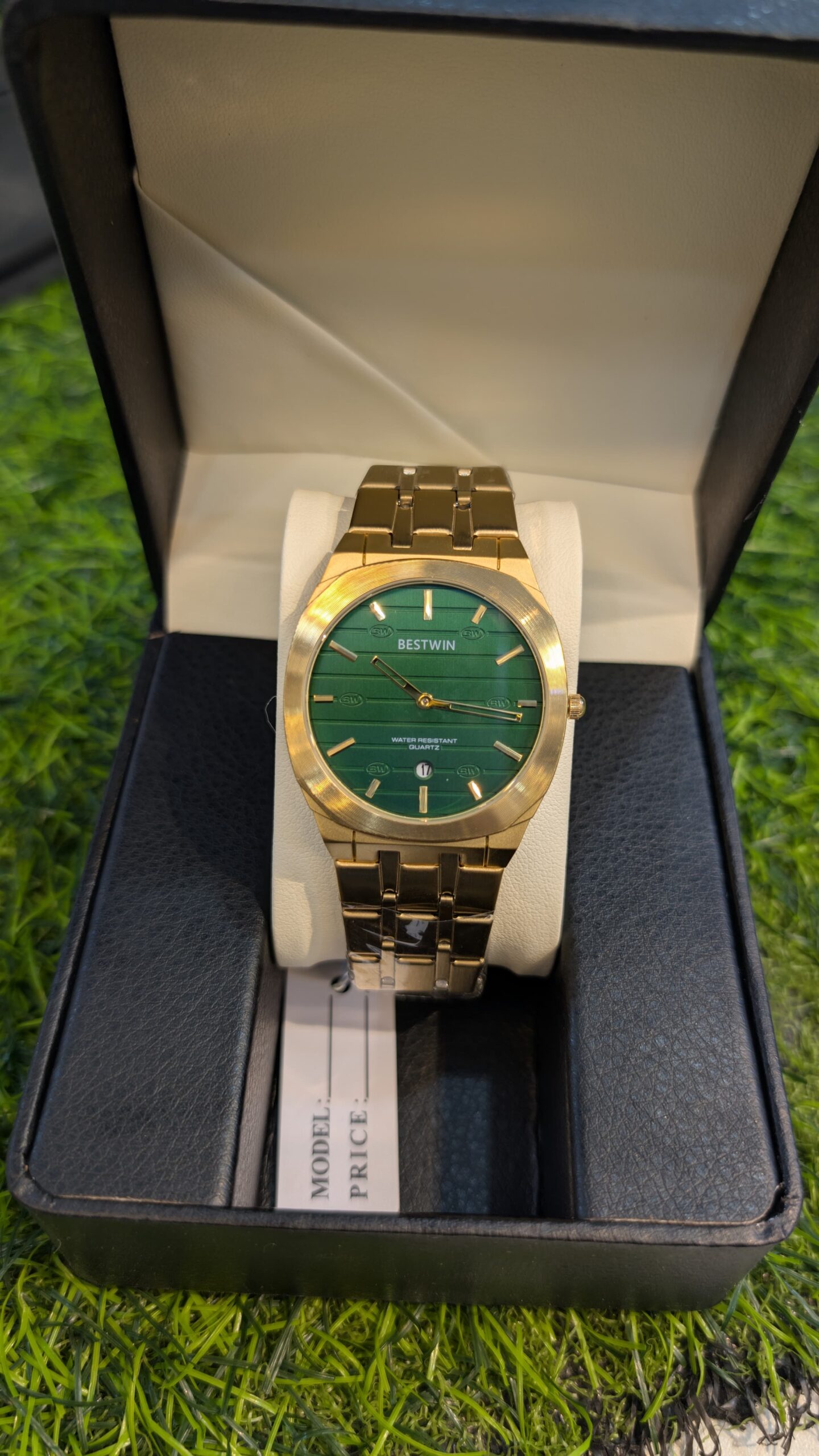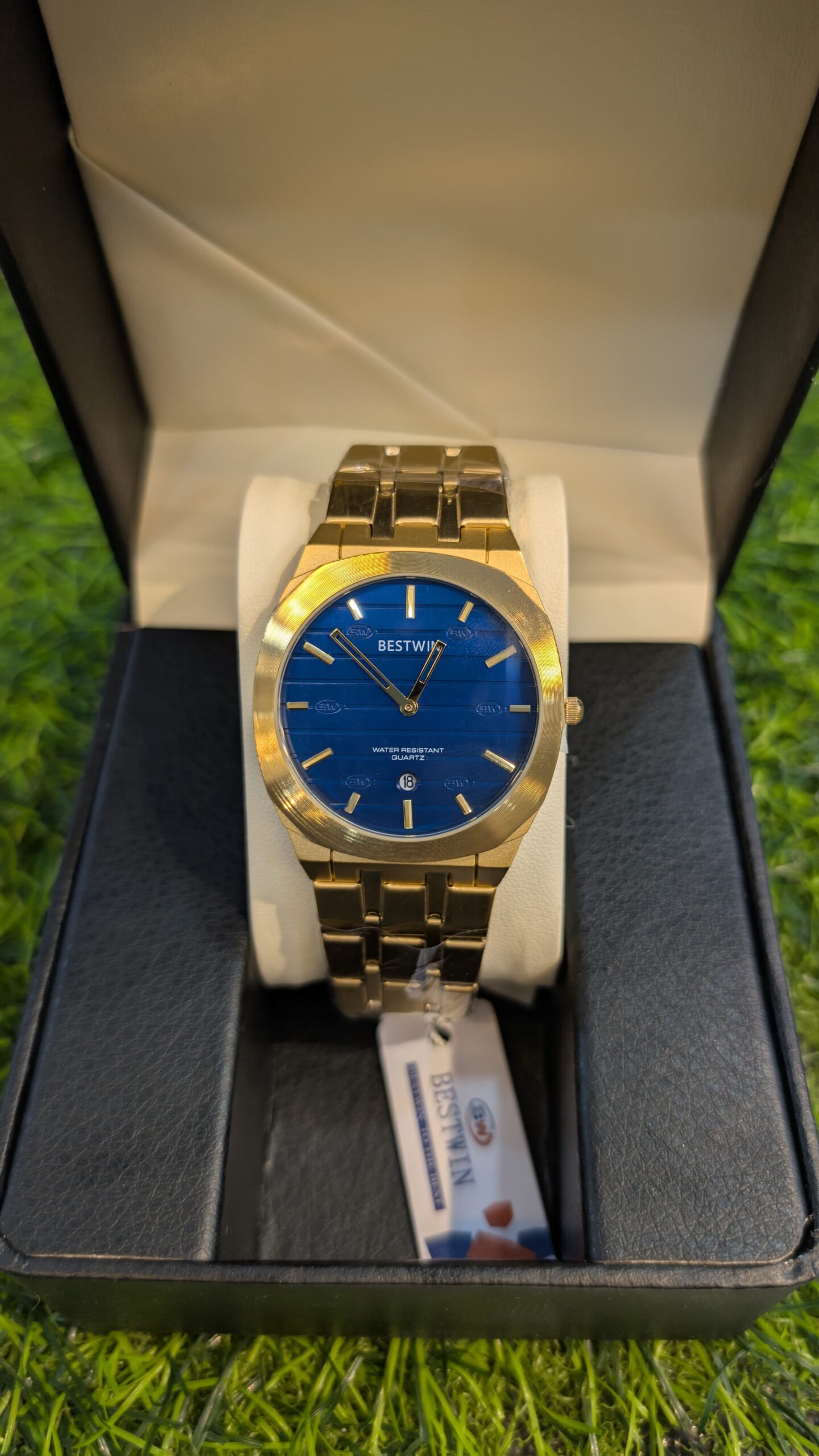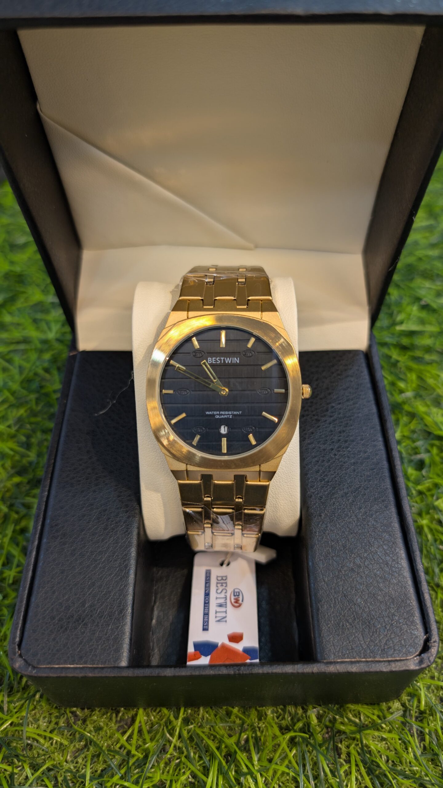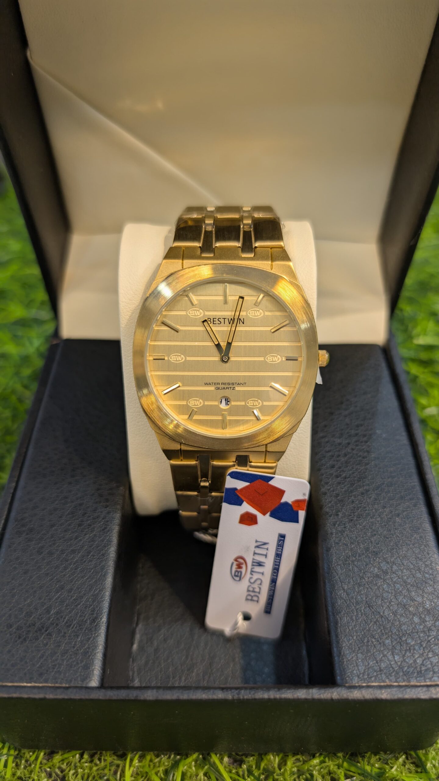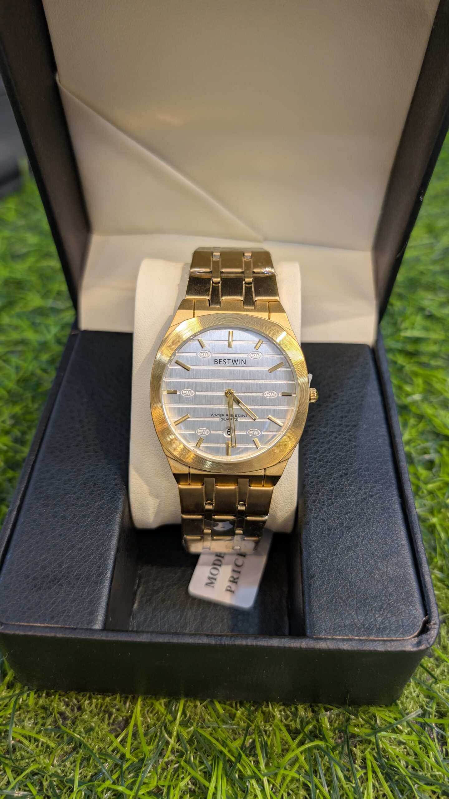 Bestwin Original Waterproof Stainless Steel Chain Watch with Date (Gold chain )