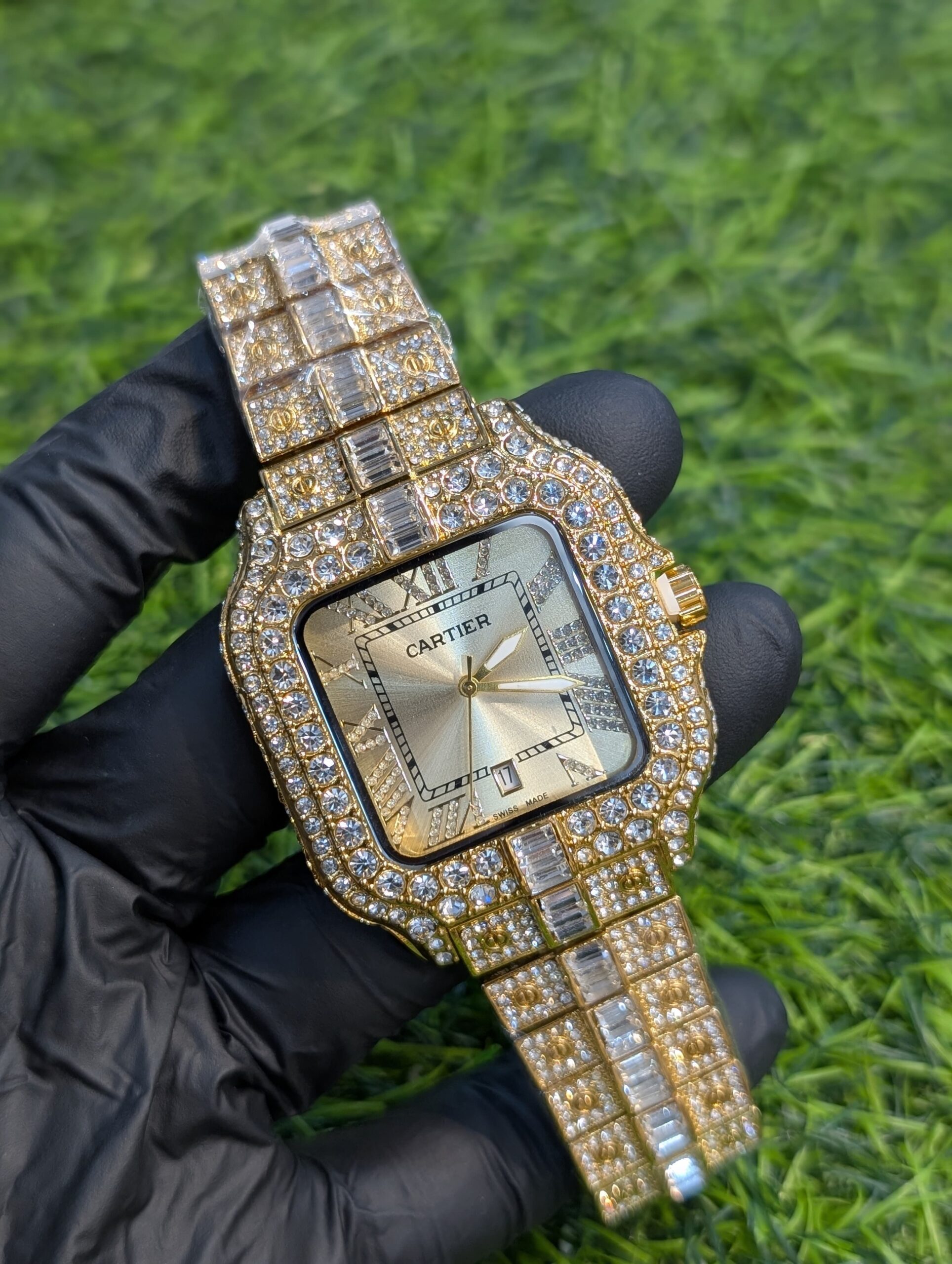 Showcase timeless elegance with the Cartier Gold Chain Watch. Designed with a fully stone-studded gold chain, Roman numeral dial, and butterfly lock, it’s an ideal watch for formal and premium occasions.