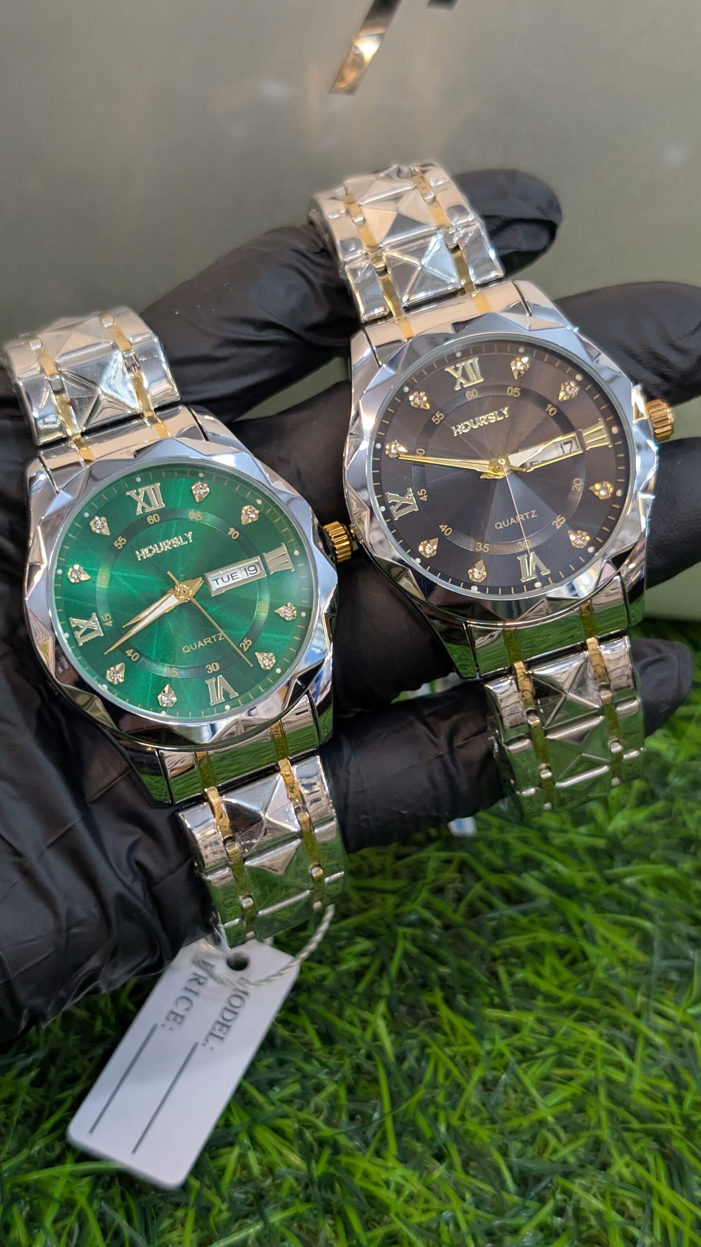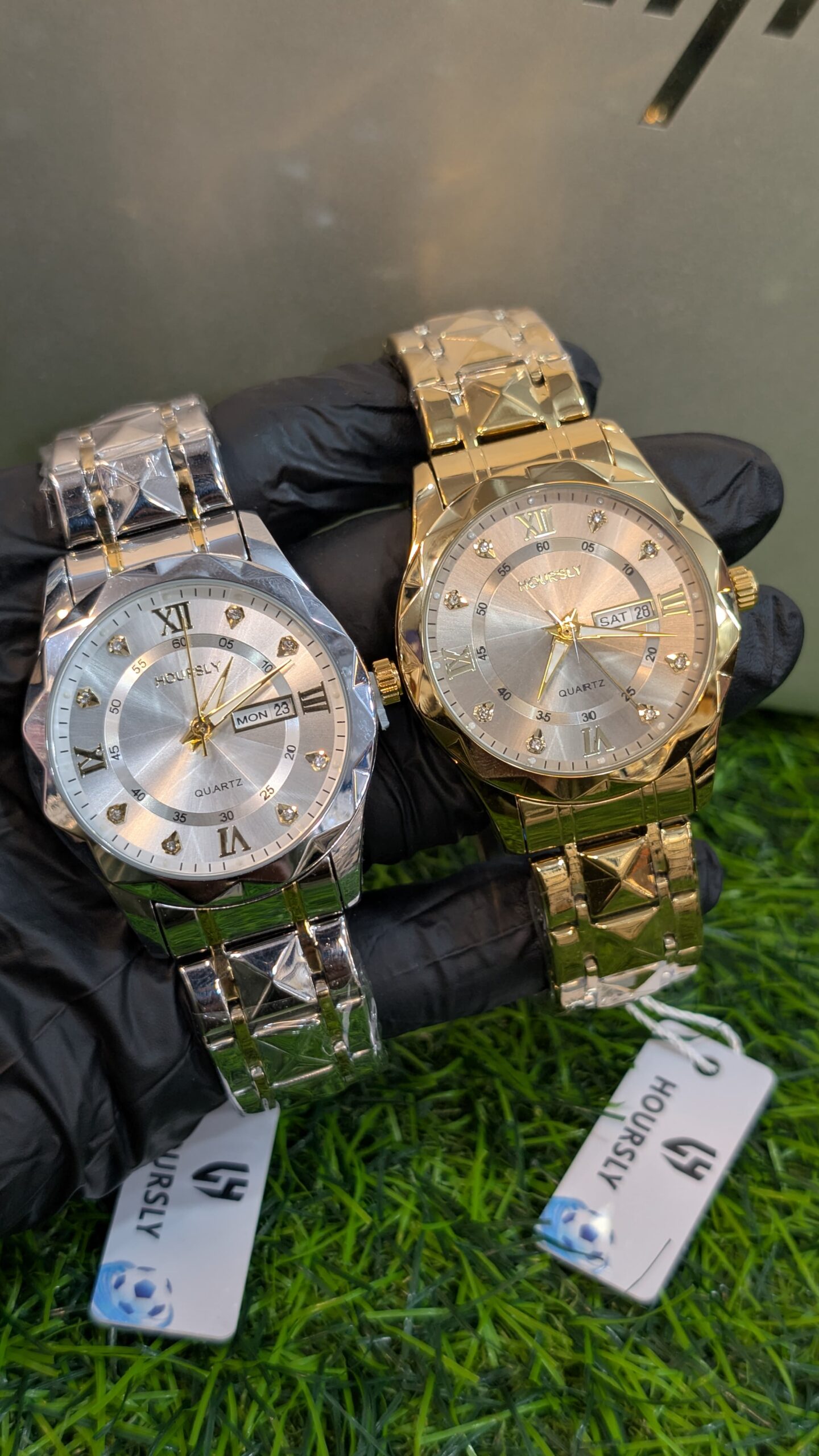 HOURSLY QUARZ WATCH | DAY AND DATE | STAINLESS STEEL CHAIN | WATER RESISTANCE